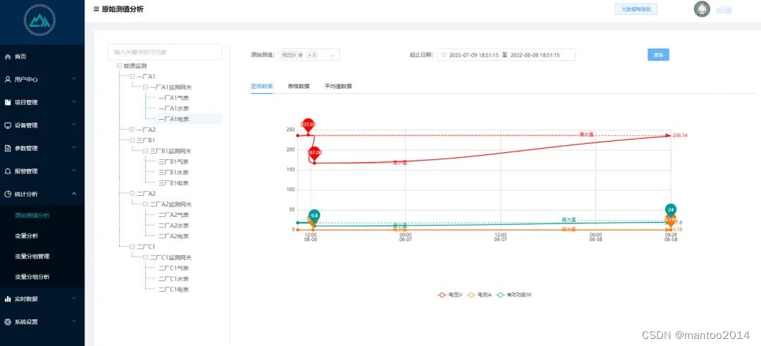 支持各电表数据采集的历史数据查看,并支持历史数据导出备份。