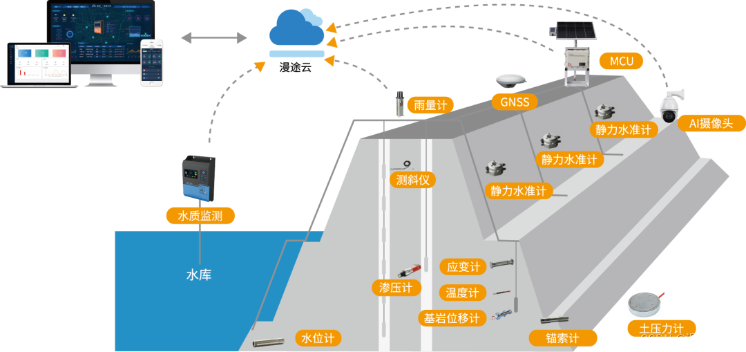 1.大坝水库结构安全监测信息采集终端MCU,具备实时数据采集功能,能够做到24小时无人值守。维护人员仅需在系统提示异常和设备维护巡检校验时进行现场查看。并且MTIC平台能够将数据上报至省级水利平台做到一端多发。使水库情况可视化,运行维护智能化。