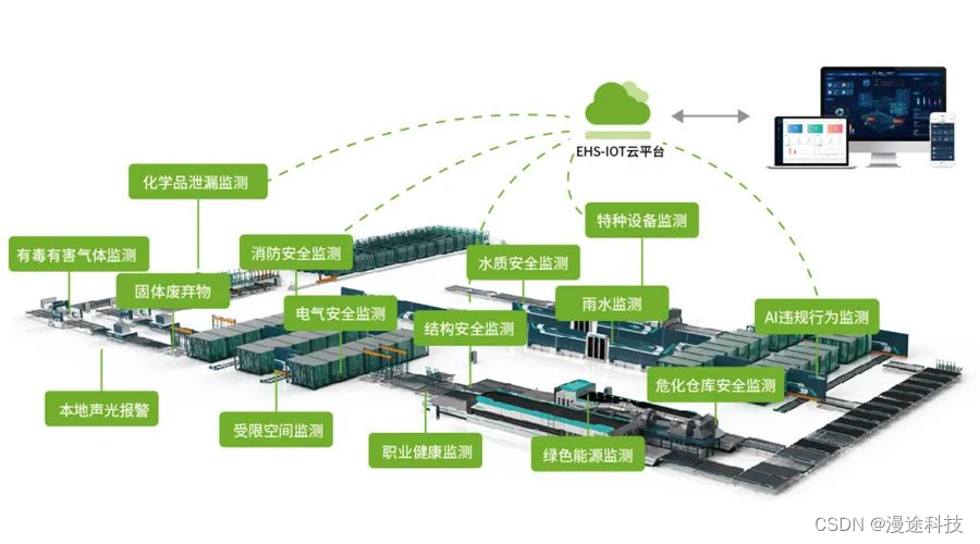 随着社会对环境保护和员工健康安全的日益关注,企业需要更加全面、高效的环境健康安全(EHS)管理体系。漫途EHS IoT安全在线监测平台系统旨在帮助企业实现EHS管理的全面优化,提高工作效率,降低风险,保障员工和环境的安全健康。系统充分利用物联网大数据技术与装配式硬件安装模式。