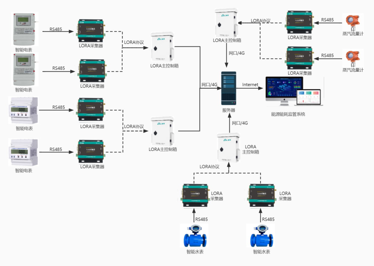 如何打破这一困局?无锡漫途科技给出的答案是 ——MTIC-ECM 能源能耗在线监测平台。这套系统就像给企业装上了 “能源智慧大脑”,通过 LoRa 数传终端实时抓取智能水、电、气设备的数据,再经过平台的分析处理,让能源消耗的每一个细节都清晰可见。