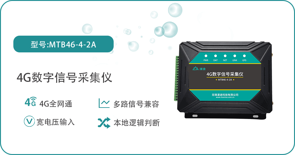 而物联网技术的兴起,正为水产养殖监测带来从 “经验判断” 到 “智能精准” 的变革,无锡漫途科技的漫途数字信号采集仪 MTB46-4-2A 监测终端,便是专为破解养殖难题打造的核心设备。