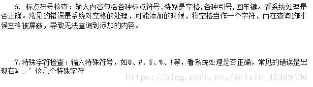 (2)异常值、特殊字符:输入空白或NULL、输入~!@#¥%……&*(){}[]等可能导致系统错误的字符