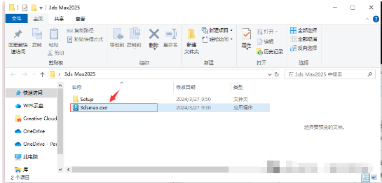 4.打开解压后的【3ds Max 2025】文件夹,复制 3dsmax 文件(快捷键:Ctrl+C)