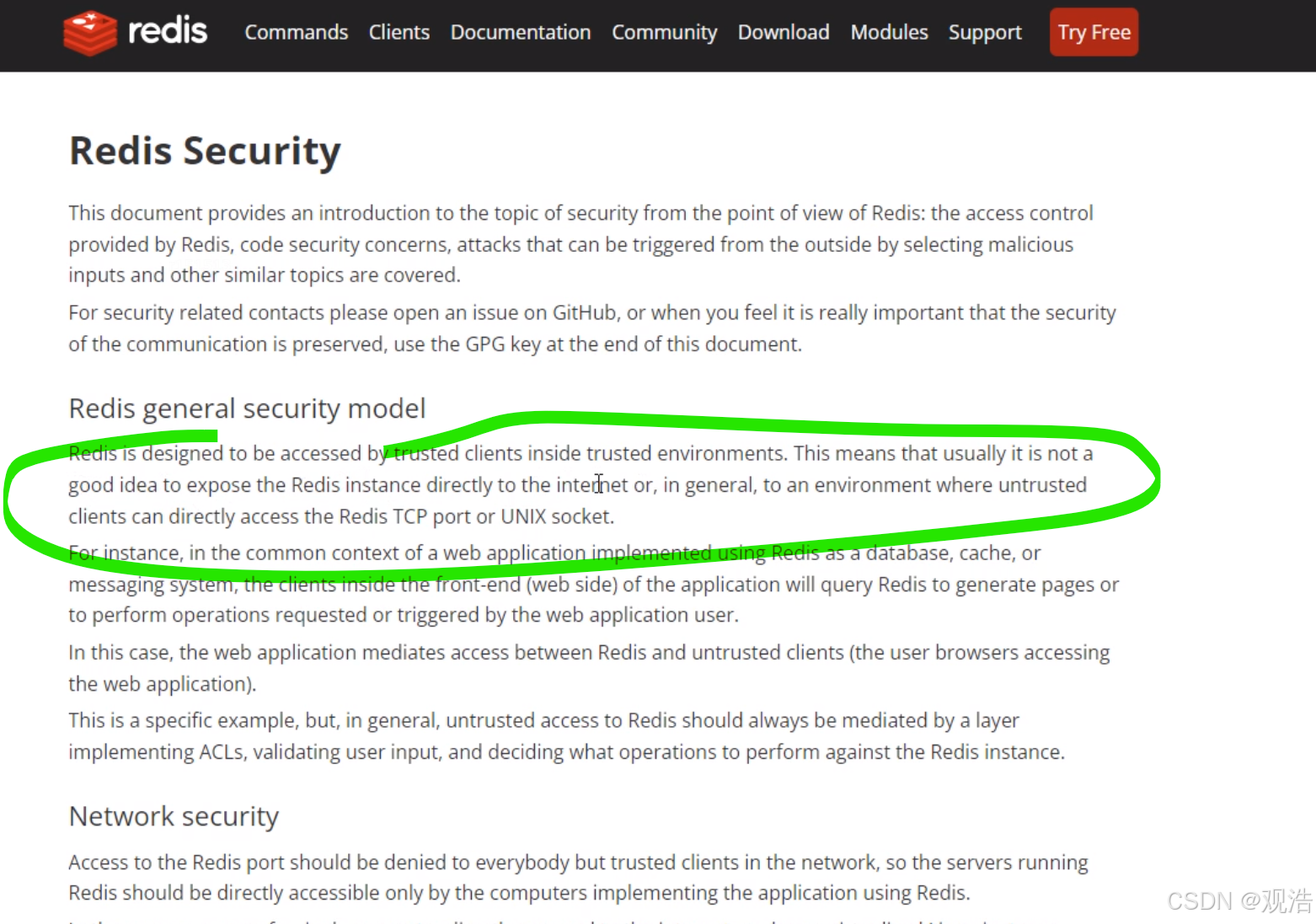 Redis is designed to be accessed by trusted clients inside trusted environments. This means that usually it is not a good idea to expose the Redis instance directly to the internet or, in general, to an environment where untrusted clients can directly access the Redis TCP port or UNIX socket.