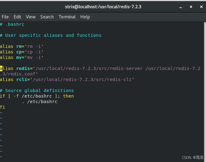alias redis='/usr/local/redis-7.2.3/src/redis-server /usr/local/redis-7.2.3/redis.conf'