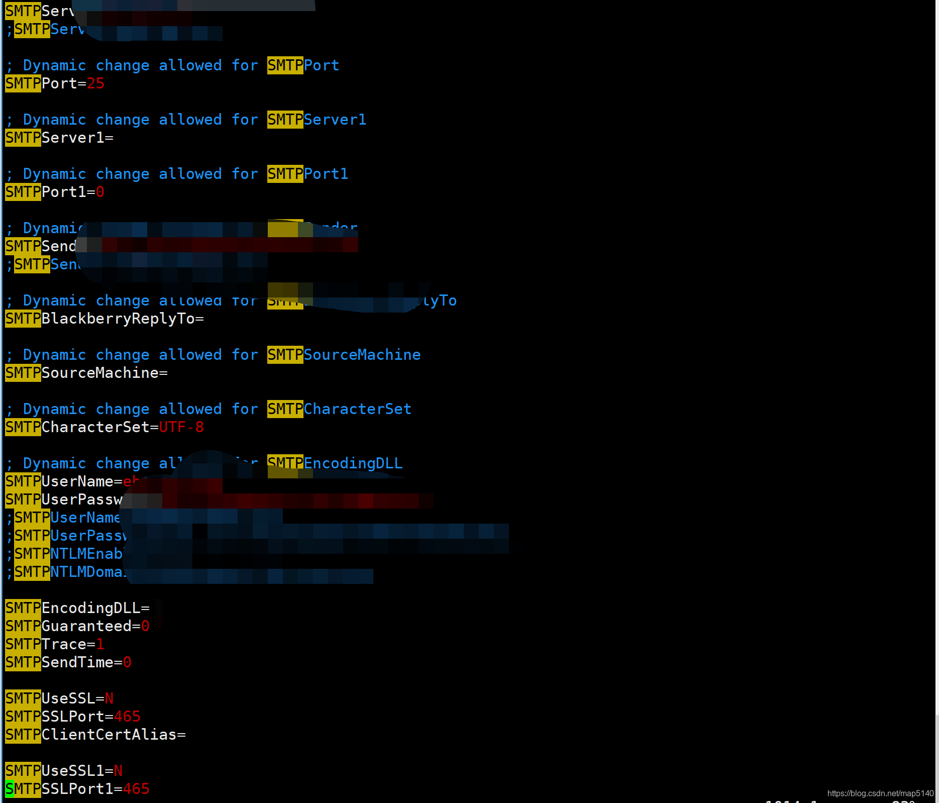 => 在文件中查找SMTP /SMTP,之后修改SMTPServer、SMTPSender、SMTPUserName、SMTPUserPassword即可