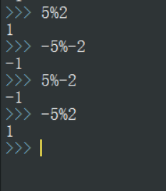 例如:5%-2 运行结果为-1,按照公式,5//-2结果为-3,最后求余结果为-1。我们在平时计算数学运算时,5%-2商-2,余1,但是在python中,涉及到//运算,需要向下取余,所以在python中应该商-3,则结果余-1。