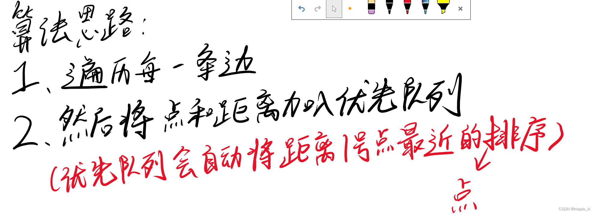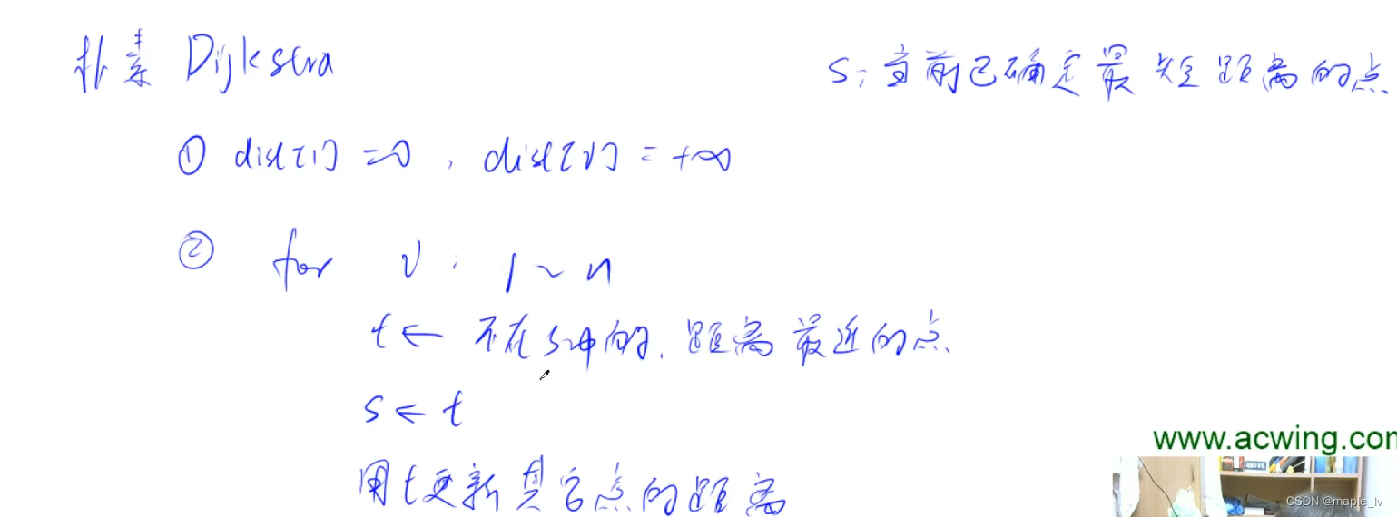 这幅图就大致展示了朴素Dijkstra算法的思路,这里再文字说明下: