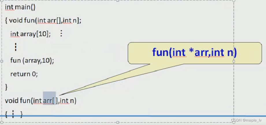 用数组名作函数参数时,因为实参数组名代表该数组首元素的地址,形参应该是一个指针变量。C编译都是将形参数组名作为指针变量来处理的。