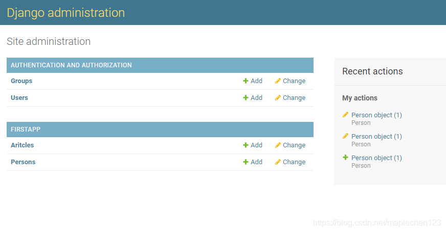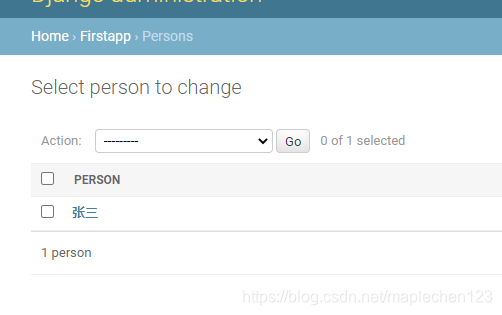 5.没有发现我们创建的Person表,是因为之前没有向admin中注册我们的数据表