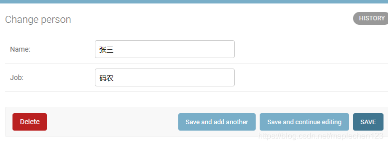 1.打开app中的models.py定义一个人员类,有名字和工作字段