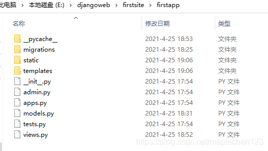 3.文件夹内会多一个migrations文件夹,打开initial.py可以看到