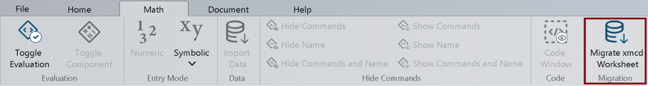安装后,迁移助手在 Maple Flow 的 Math 选项卡中可以找到: