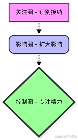 我们大部分的焦虑,都源于把精力和情绪,耗费在了“关注圈”里。真正的选择权,体现在将你的资源(时间、精力、情绪)聚焦在“控制圈”和“影响圈”。