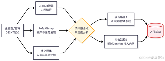 图注: 展示了如何将来自不同渠道的零散信息,融合成具体的、可执行的攻击路径。