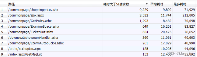 根据访问频率和耗时情况,得到需要优化的路径如下: