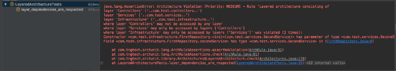 .layer("Infrastructure").definedBy("..com.test.infrastructure..")