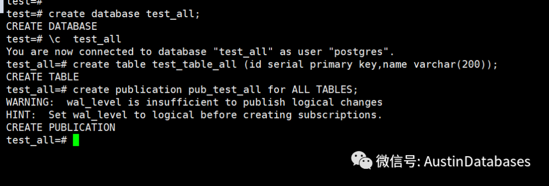 wal_level = logical 复制中的 wal 等级必须是 logical