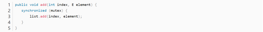 从上面代码可以看到,Vector使用同步方法实现线程安全,而SynchronizedList使用代码块实现。