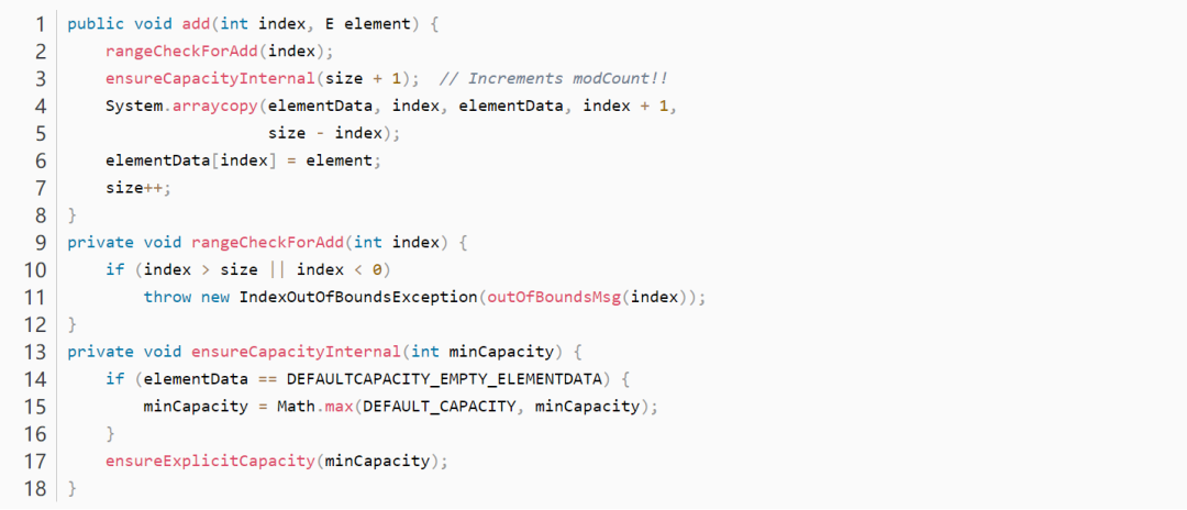 我们来看看ArrayList的add()方法代码,除了没有synchronized修饰方法,还真的很相似: