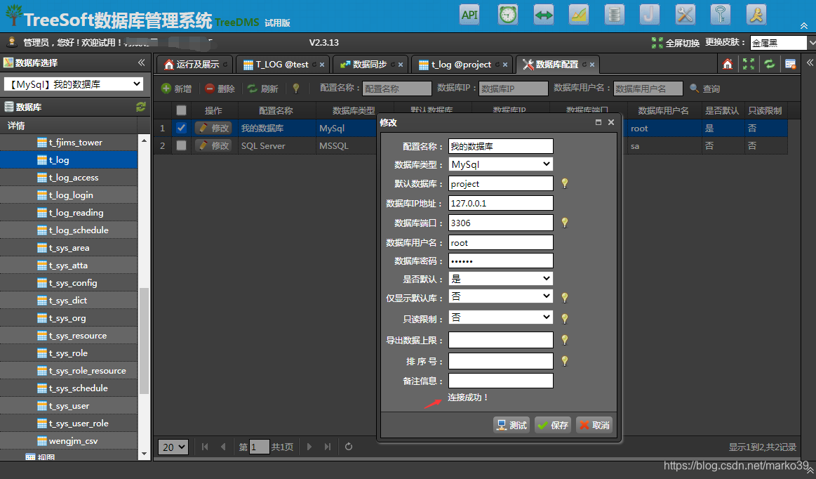 1、配置SQL Server和MySQL的连接信息,并测试通过