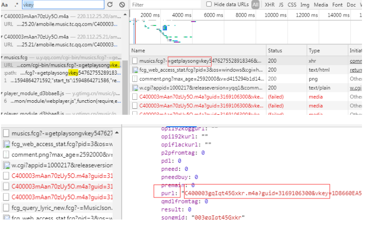 到此找到了vkey的获取方式,这个prul其实就是下载的真实链接