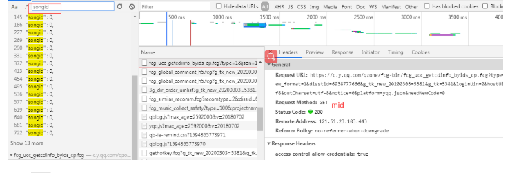 对照参数,找到下面这条接口里面就有songmid