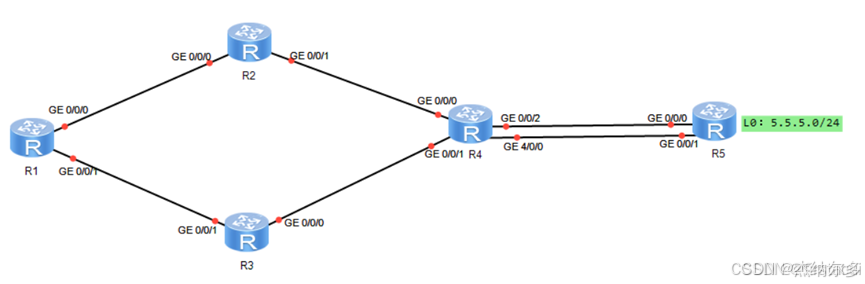 2、编写除了到达5.5.5.0/24之外,到达其他网段的静态路由