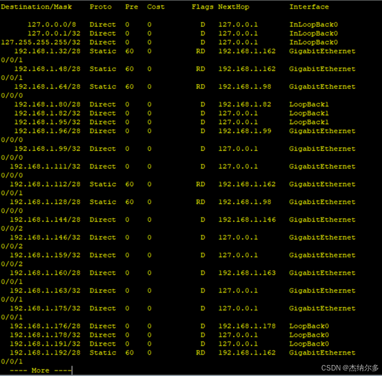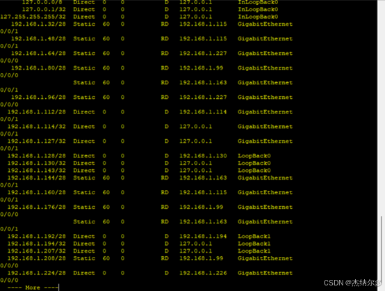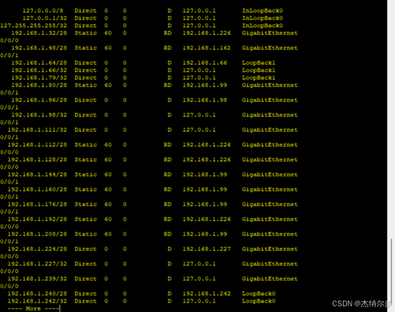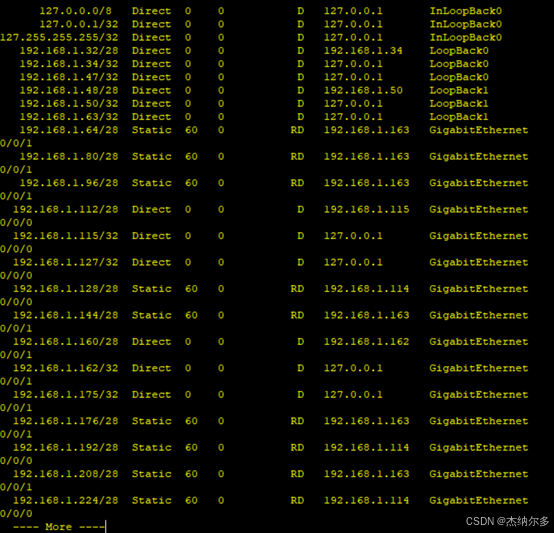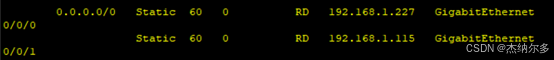 5、做备份,通过改变路由条目优先级实现,并观察静态路由表变化