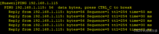 3、配置缺省路由,实现5.5.5.0/24互通,至此实现全网通,并测试