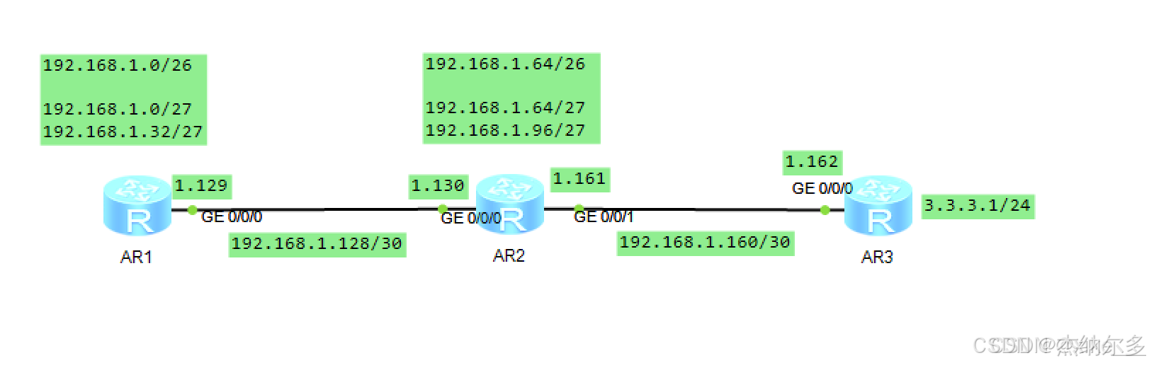 2.其他网段基于192.168.1.0/24进行划分;