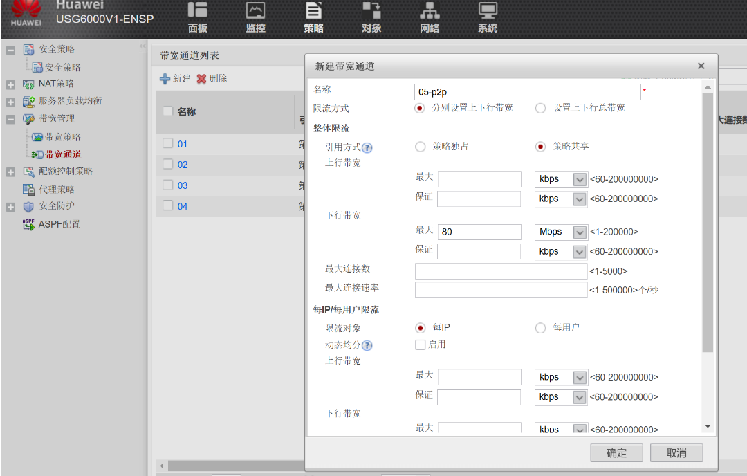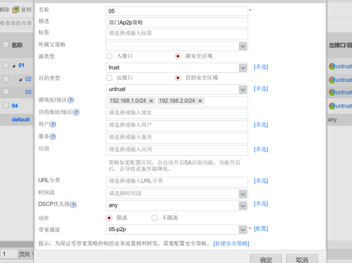 给部门a写p2p策略,绑定带宽通道05-p2p