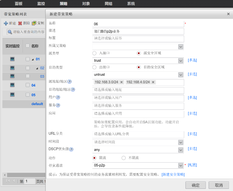 给部门b写p2p策略,绑定带宽通道05-p2p