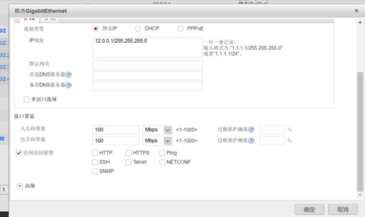 在最上面选择网络,左边选择接口,找到接口1/0/1编辑,在最下面的接口带宽中入方向带宽和出方向带宽填写