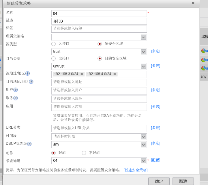 3、部门A和部门B的P2P业务下行最大带宽不超过80M