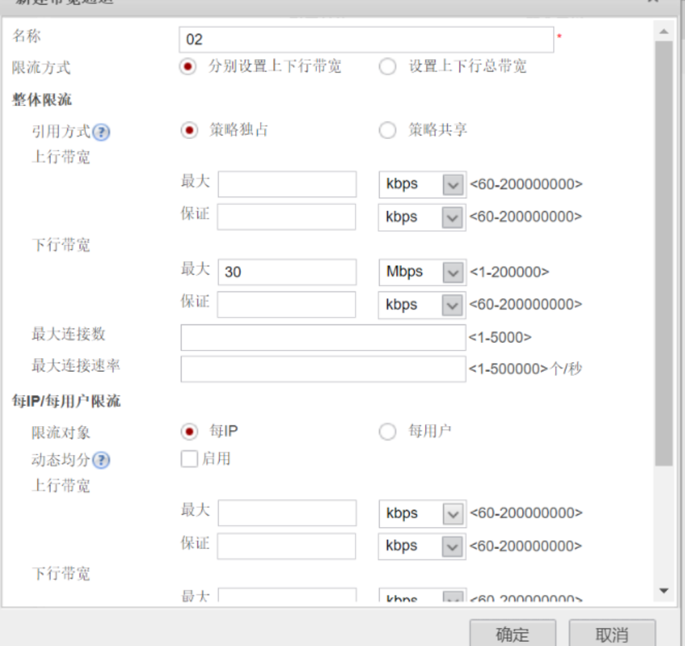 3、假设,总共30个上网用户,在上网高峰期,限制每个用户访问Internet的最大下行带宽不超过2M