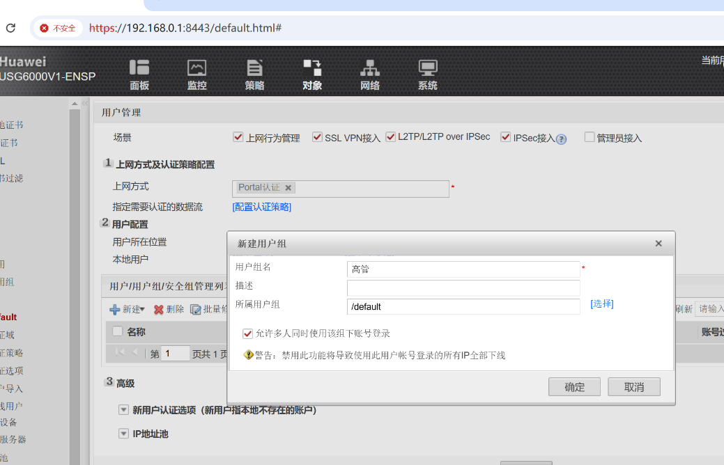 [fw-GigabitEthernet0/0/0]service-manage all permit ---开启web服务