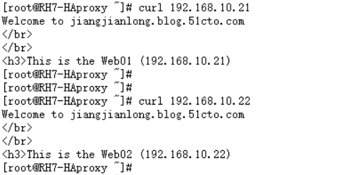 2、在RH7-HAProxy上也访问一下两台Web,确认也可以正常访问