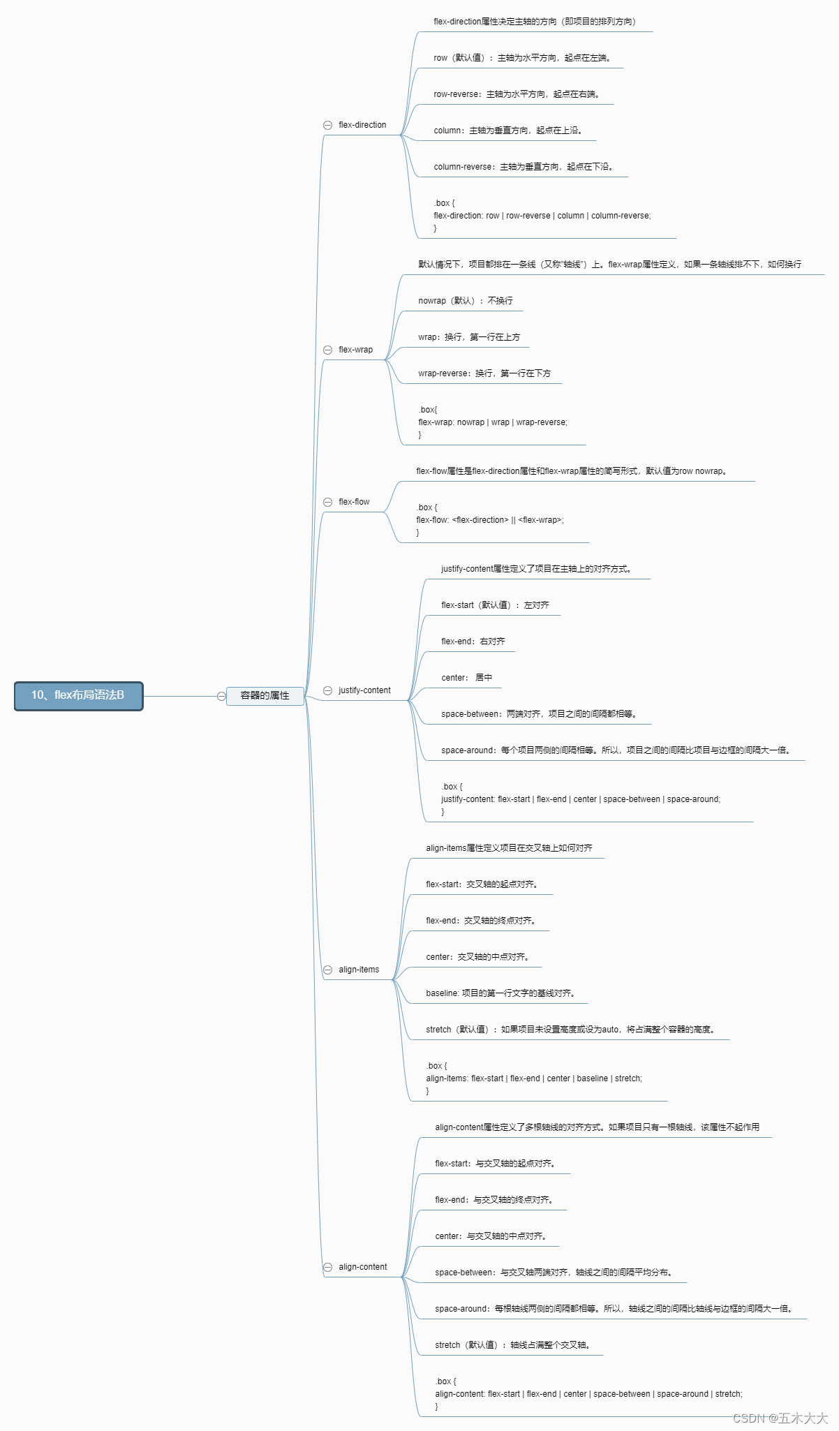 本文详细介绍了flex布局的语法,包括flex-direction、flex-wrap、flex-flow等属性的作用,以及justify-content和align-items/align-content在主轴和交叉轴上的对齐方式。