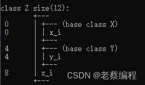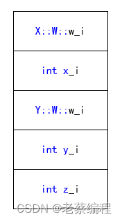 这时,类Z的爷爷类W会被继承2次,一次是X::W,另一次是Y::W,所以sizeof(z) = 5 * 4 = 20。