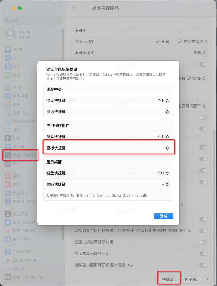 系统设置->桌面与程序坞->快捷键->将所有鼠标快捷键设置为-即可。