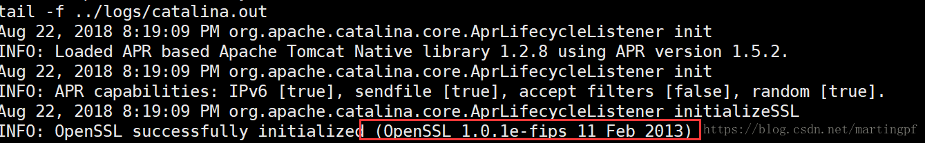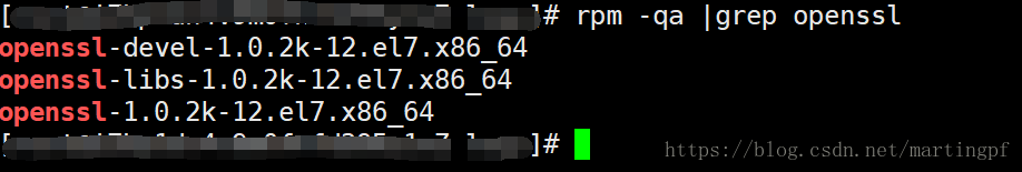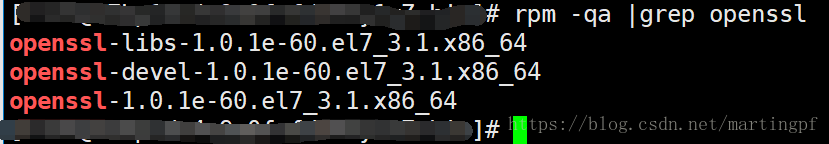 既然卡在这个地方说明tomcat在启动过程中依赖的是系统底层openssl及依赖库版本,用命令“rpm -qa|grep openssl”结果如图
