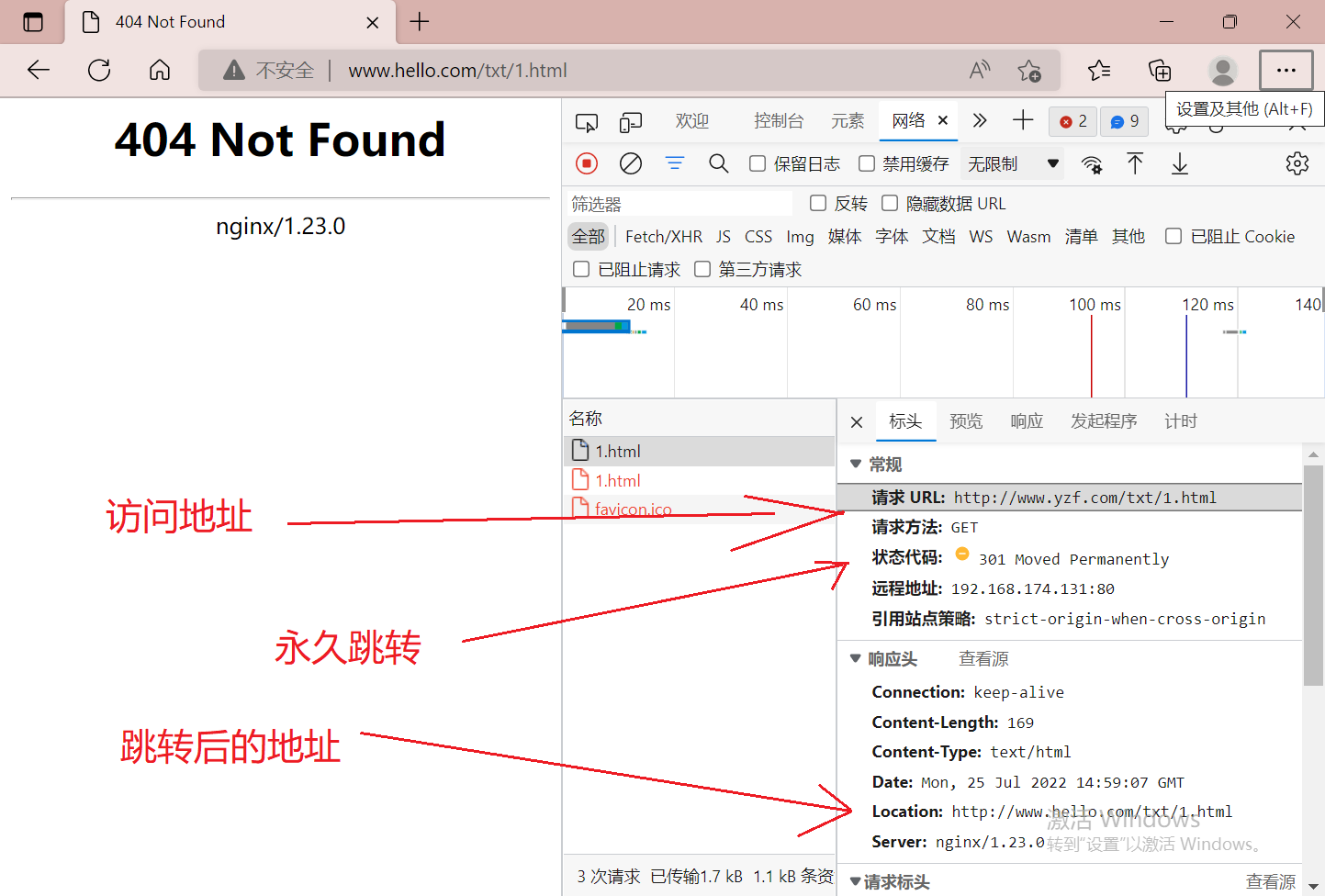 浏览器访问www.yzf.com/test/1.html(不存在的路径)