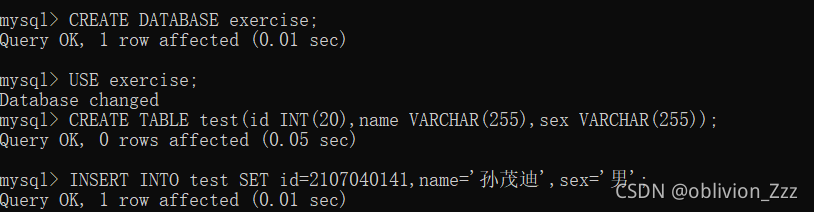 3.创建数据库,注意在MySQL中输入命令时最好是大写。