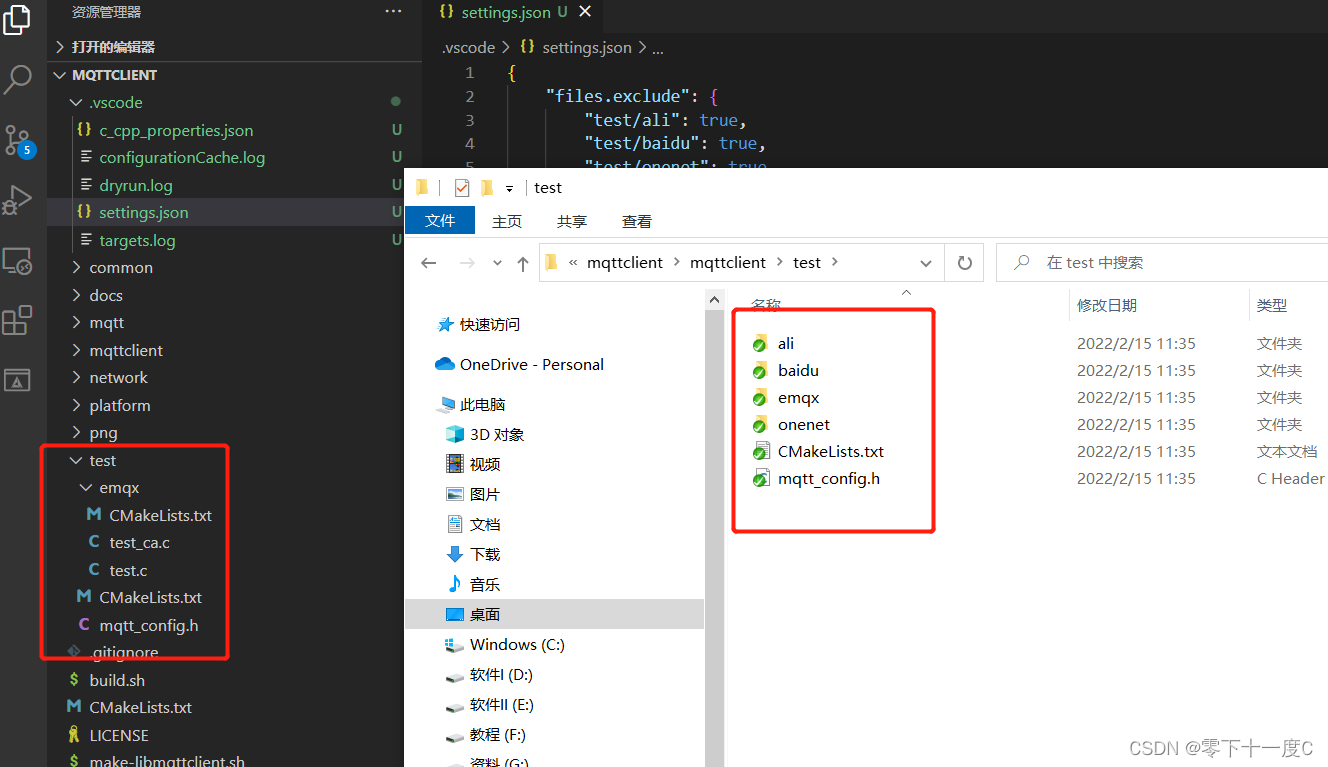 则可看到 vs打开的目录下 test文件夹下只有emqx了 烧了ali baidu onenet等文件夹