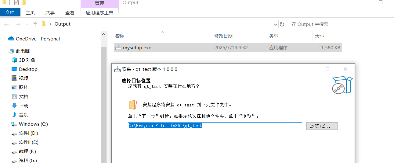 完成后,会在桌面生成一个Output文件夹, 里面的exe为安装包程序。