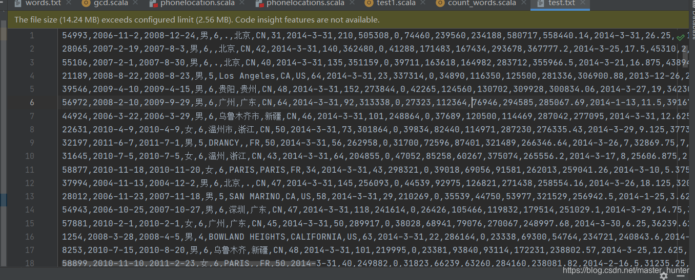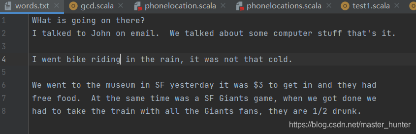 这段博客展示了如何使用Scala进行文本分析,包括统计特定性别用户数量和执行单词计数。第一个实验统计了'男'性用户的数量,而第二个实验则对单词进行了计数并输出了每个单词的频次。