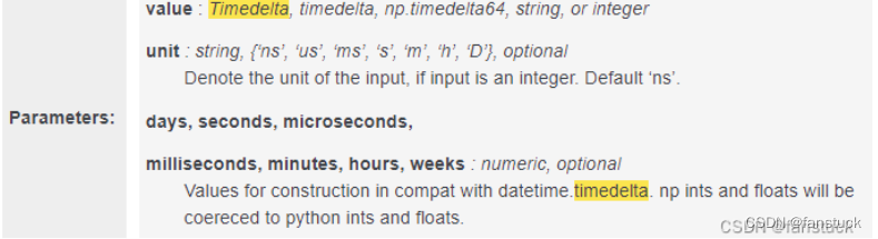 timedelta类表示为时间差,可直接实例化也可以由两个datetime进行相减操作得到。