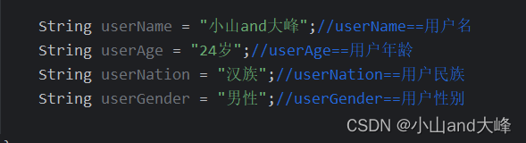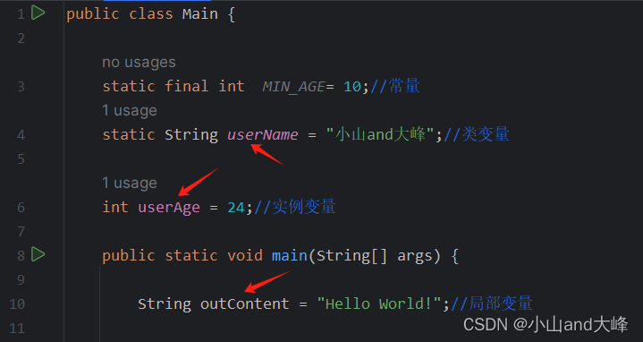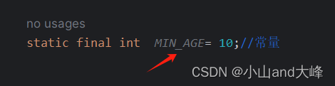 类变量、实例变量、局部变量,采用首字母小写以及驼峰原则,如下图所示。