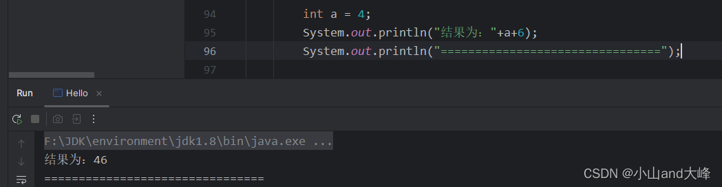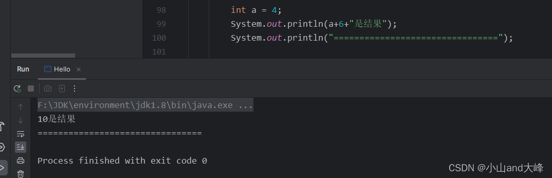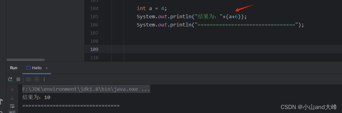 若在+(连接符)后使用了String类型数据,其前者还可以正常计算,然后拼接,如下图所示。